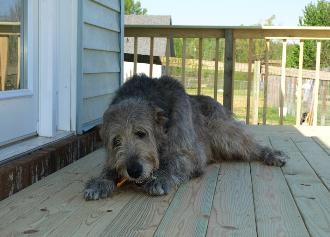 After some 22 years plus we expanded our fenced in backyard and went taller. Now nearly one acre is fenced and we will be busy for several weeks taking down the old fence that has kept our wolfhounds safe for so many years. Next will come a new and larger deck. See video of Charm, Shay and Sonoma running and playing in their newly expanded yard.