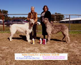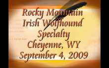 Rocky Mountain Irish Wolfhound Specialty September 4, 2009 Cheyenne, WY. Judge: Elizabeth Murphy There was a number of entries from Arkansas at this specialty and plenty of video that focuses on these entries. Highlight of the day was watching Ch Steppin'wolf's Dans Mon Coeur (Twister) win Best In Specialty Show and Ch. David's Dream of Taryn (Dee Dee) honored with an Award of Merit. Both from Arkansas. If you would like to watch video of Twister and Dee Dee click on the picture to the left.