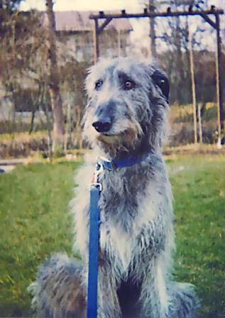 Katherine Pele of Austin - Our second wolfhound, Katie joined our family when she was 6 months of age in September 1989. She was a very timid puppy and frightened of everything. The first few months were very difficult for everyone. She had only known her previous family and at 6 months she was going through a very shy period in her life. Katie had also not been socialized. Meeting a stranger and a ride in the car was terrifying to her. Training started right away. Good behaviour was reinforced with positive rewards and with gentle but firm training Katie blossomed. Katie was never again afraid of strangers by the time she was 1 year old. She had such a positive out-going personality. That it was hard to convince anyone that met Katie, to believe she was a very shy puppy. Katie was very special to us beyond words. In March of 2000, Katie was humanely relieved of her pain, when her battle to defeat cancer was no longer possible. She was just over 11 years of age when we had to say good-bye. That day was one of the most tear full days of our lives. It had been raining all day and stop raining when Katie join our beloved Koa at Rainbow bridge. As if God was crying with us and warmed us with Sun light upon her arrival at his side. Katie was our first heart hound.